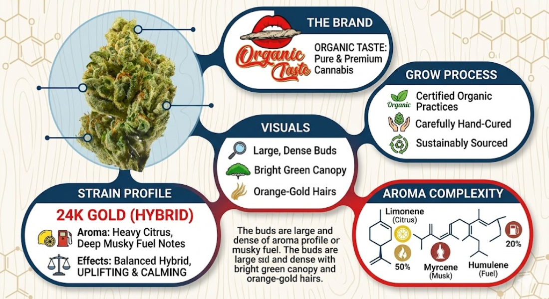 - Experience the vibrant citrus profile of the 24k Gold Strain. Discover high-quality, lab-tested THCa flower curated for connoisseurs by Organic Taste. Shop now!