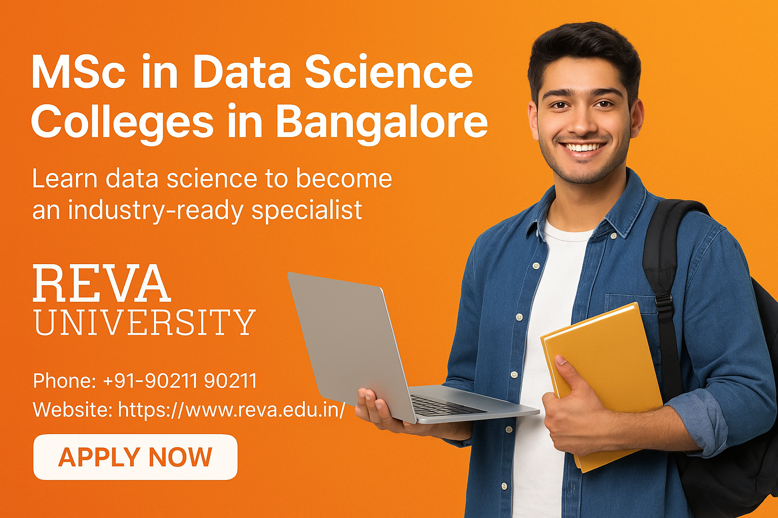 REVA University offers a 2-year MSc in Data Science program right in Bangalore. The course is built to give you strong skills in AI, machine learning, data mining, time-series analysis, and visualization. With access to labs, industry-relevant projects, and research mentorship, you’ll be ready for careers in data engineering, analytics, business intelligence, and data science roles in tech firms.