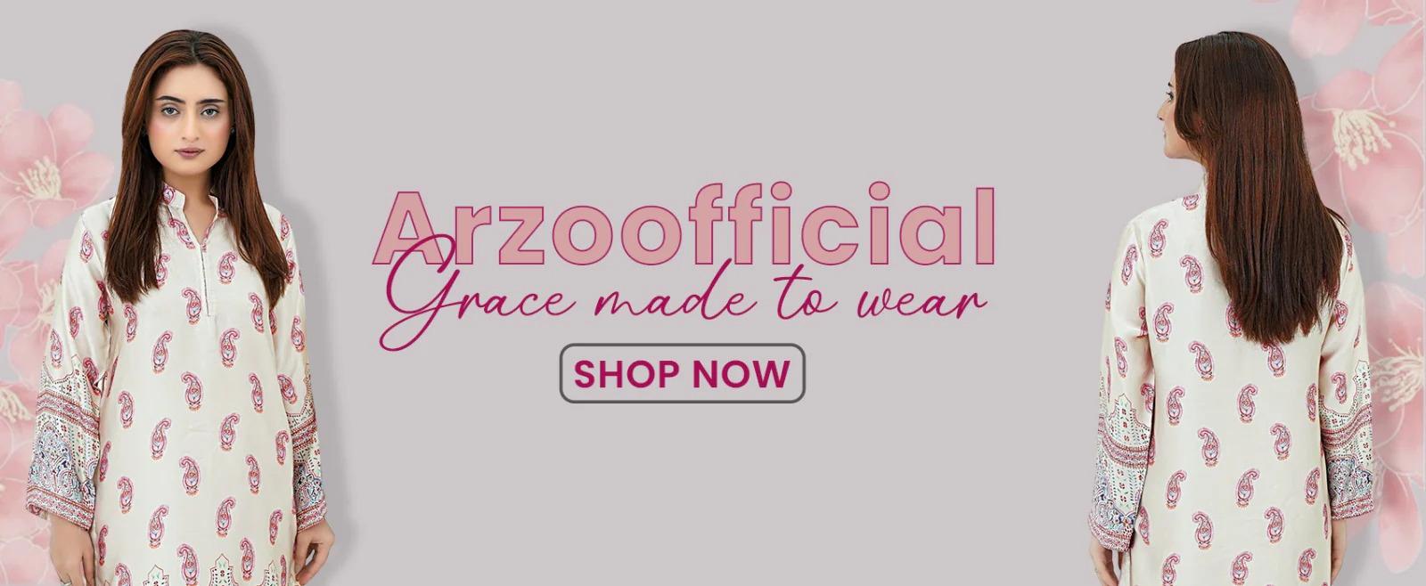 Discover Arzo Official's exquisite selection of women's apparel, which includes elegant casual wear and elaborate formal attire. Now is the time to browse the newest trends in Pakistani fashion, which combines classic elegance with modern flair.