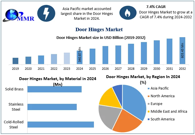Door Hinges Market size was valued at USD 340.87 Million in 2024 and the total Door Hinges revenue is expected to grow by 7.4% from 2025 to 2032, reaching nearly USD 603.43 Million.