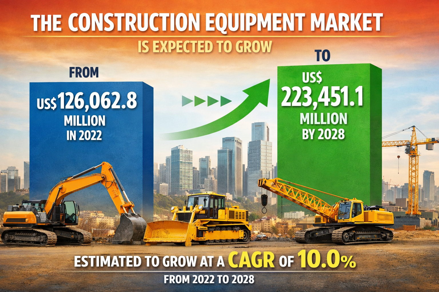 The global landscape for heavy machinery is undergoing a period of intense development, fueled by an increase in residential, commercial, and industrial projects worldwide. As urban populations expand, the necessity for robust infrastructure becomes paramount, leading to a surge in demand for high performance machinery. The construction equipment market is expected to grow from US$ 126,062.8 million in 2022 to US$ 223,451.1 million by 2028; it is estimated to grow at a CAGR of 10.0% from 2022 to 2028. This significant valuation reflects the critical nature of the industry in facilitating global economic recovery and modernization efforts.