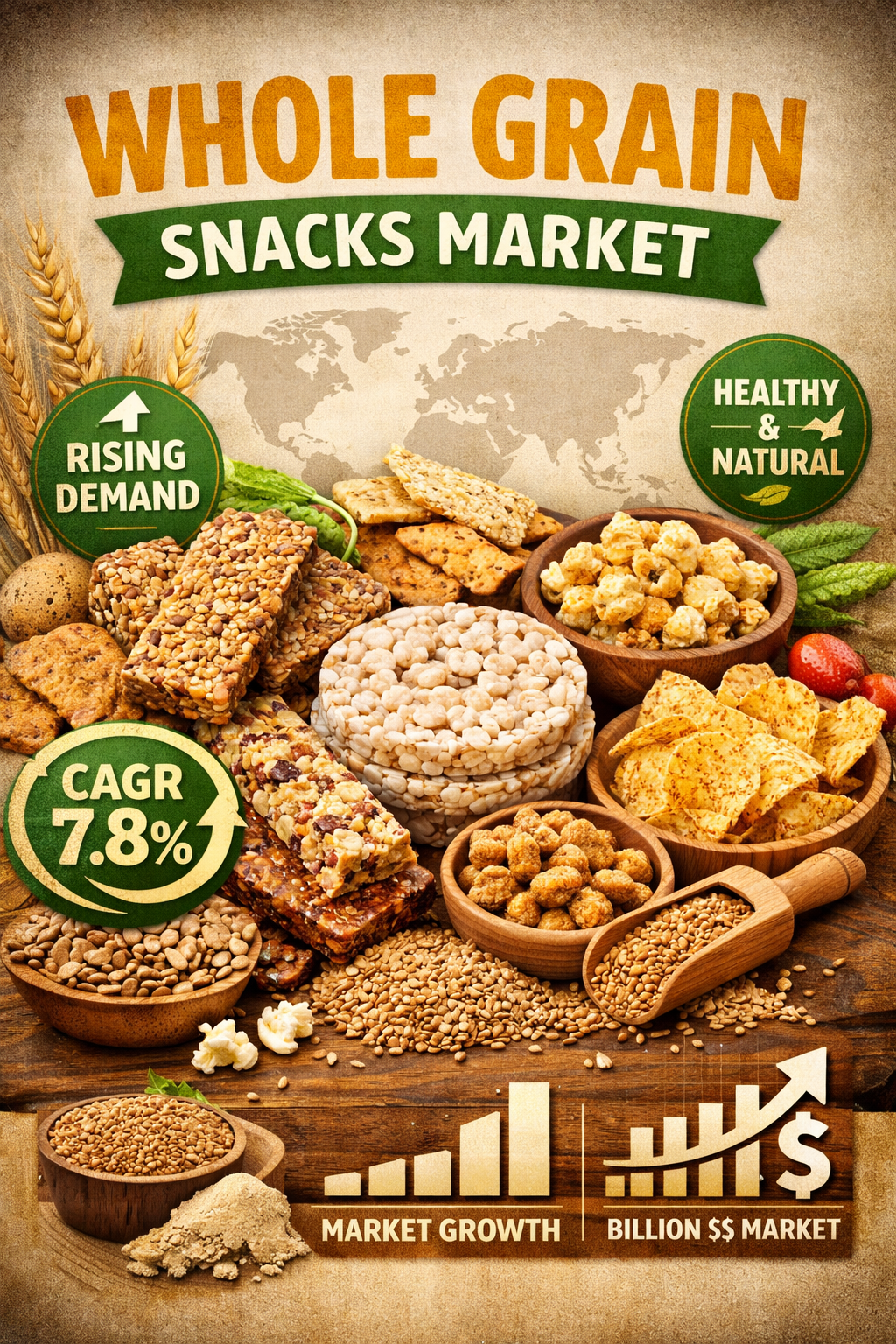 The global whole grain snacks market report scope is provides a comprehensive analysis of industry dynamics, including market size, growth trends, segmentation, competitive landscape, and regional outlook. The report is designed to offer actionable insights to stakeholders such as manufacturers, investors, distributors, and policymakers, enabling them to make informed strategic decisions.