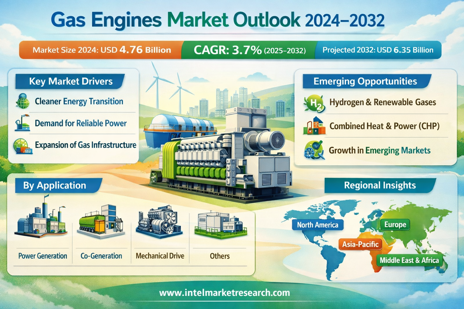 According to a new report from Intel Market Research, the global Gas Engines market was valued at USD 4.76 billion in 2024 and is projected to reach USD 6.35 billion by 2032, growing at a steady CAGR of 3.7% during the forecast period (2025–2032). This growth is fueled by the global shift toward cleaner energy, rising demand for reliable power generation, and stringent environmental regulations supporting the transition from coal-fired power.