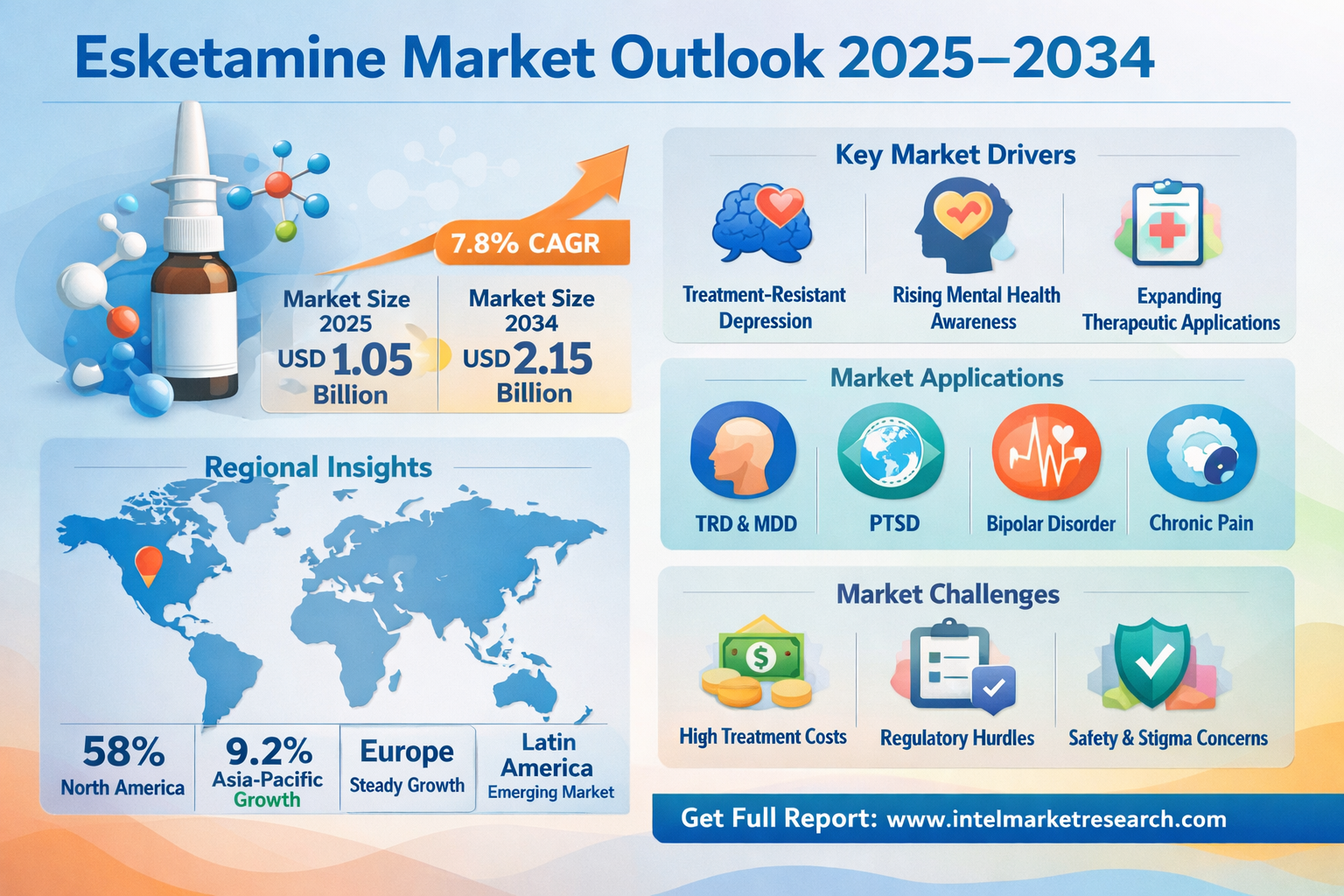 According to a new report from Intel Market Research, the global Esketamine market was valued at USD 1.05 billion in 2025 and is projected to reach USD 2.15 billion by 2034, growing at a CAGR of 7.8% during the forecast period (2026–2034). This growth is driven by rising mental health awareness, increasing prevalence of treatment-resistant depression, and expanding therapeutic applications of esketamine in psychiatric care.