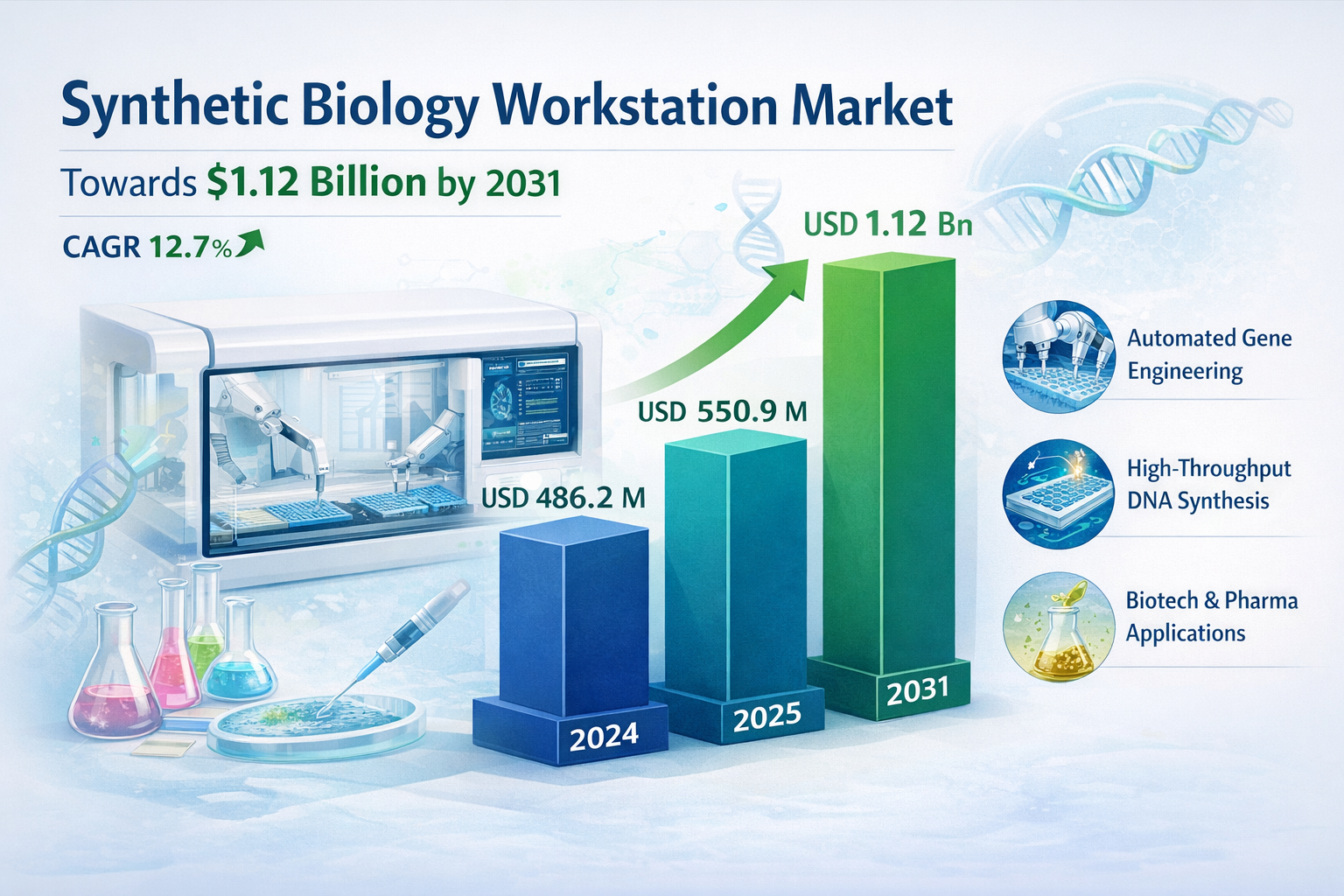 According to a newly published market research report by 24LifeSciences, global synthetic biology workstation market was valued at USD 486.2 million in 2024 and is projected to reach USD 1.12 billion by 2031, growing at a compound annual growth rate (CAGR) of 12.7% during the forecast period 2025-2031.