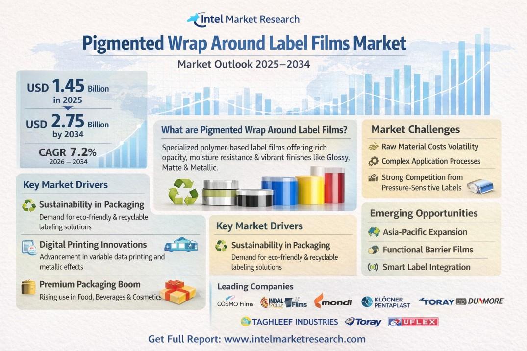 According to a new report from Intel Market Research, the global Pigmented Wrap Around Label Films market was valued at USD 1.45 billion in 2025 and is projected to reach USD 2.75 billion by 2034, growing at a CAGR of 7.2% during the forecast period (2026–2034). This growth is fueled by increasing demand for premium packaging across food & beverage sectors, coupled with technological advancements in digital printing and sustainable material development.