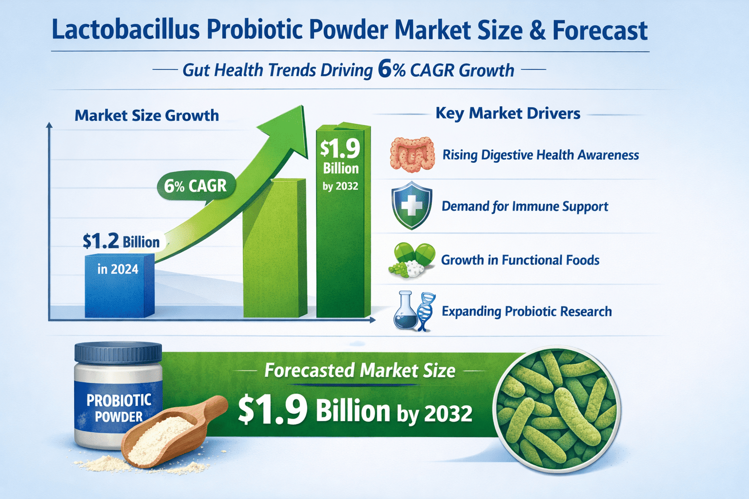 Global Lactobacillus Probiotic Powder Market is witnessing robust expansion, with its valuation reaching USD 1.37 billion in 2023 according to recent industry analysis. The market is projected to grow at a CAGR of 6%, reaching approximately USD 2.31 billion by 2032. This sustained growth stems from rising consumer awareness about gut health and the increasing adoption of probiotic supplements in functional foods and pharmaceuticals.