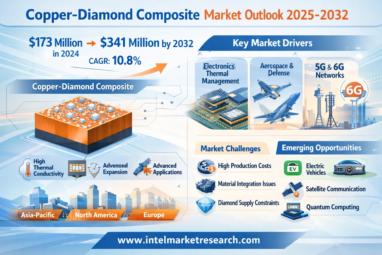 According to a new report from Intel Market Research, the global Copper-Diamond Composite market was valued at USD 173 million in 2024 and is projected to reach USD 341 million by 2032, growing at a robust CAGR of 10.8% during the forecast period (2025–2032). This growth is propelled by the escalating demand for advanced thermal management solutions across electronics packaging, aerospace systems, and next-generation communication infrastructure including 5G and 6G networks.