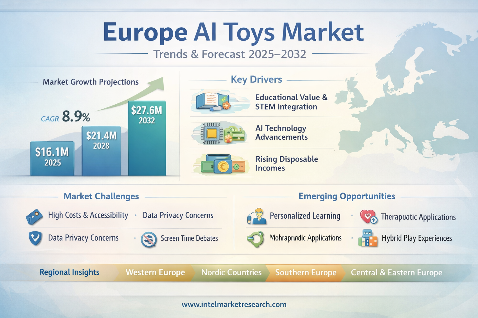 According to a new report from Intel Market Research, the Europe AI Toys Market was valued at USD 14.7 million in 2024 and is projected to grow from USD 16.1 million in 2025 to USD 27.6 million by 2032, exhibiting a robust CAGR of 8.9% during the forecast period (2025–2032). This growth is propelled by rising parental demand for interactive and educational play experiences, rapid advancements in artificial intelligence and natural language processing, and the deepening integration of smart technology into early childhood development frameworks across the continent.