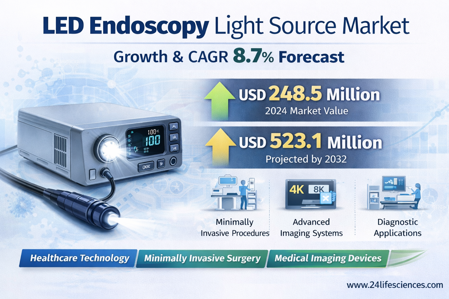 According to a newly published market research report by 24LifeSciences, global LED endoscopy light source market was valued at USD 248.5 million in 2024 and is projected to reach USD 523.1 million by 2032, growing at a compound annual growth rate (CAGR) of 8.7% during the forecast period 2025-2032.
