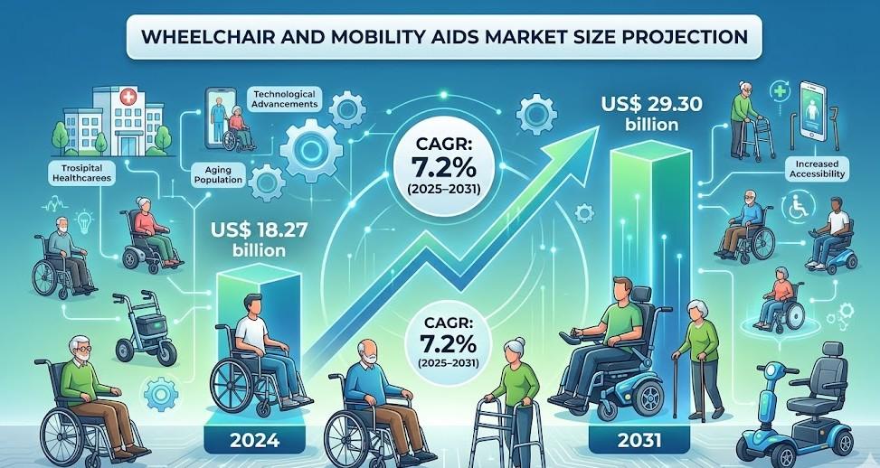 The Wheelchair and Mobility Aids Market Analysis highlights a projected rise from US$ 18.27 billion in 2024 to US$ 29.30 billion by 2031, reflecting a CAGR of 7.2% during 2025 to 2031. This growth is driven by technological advancements, supportive healthcare policies, and increasing awareness of mobility solutions across both developed and developing regions.