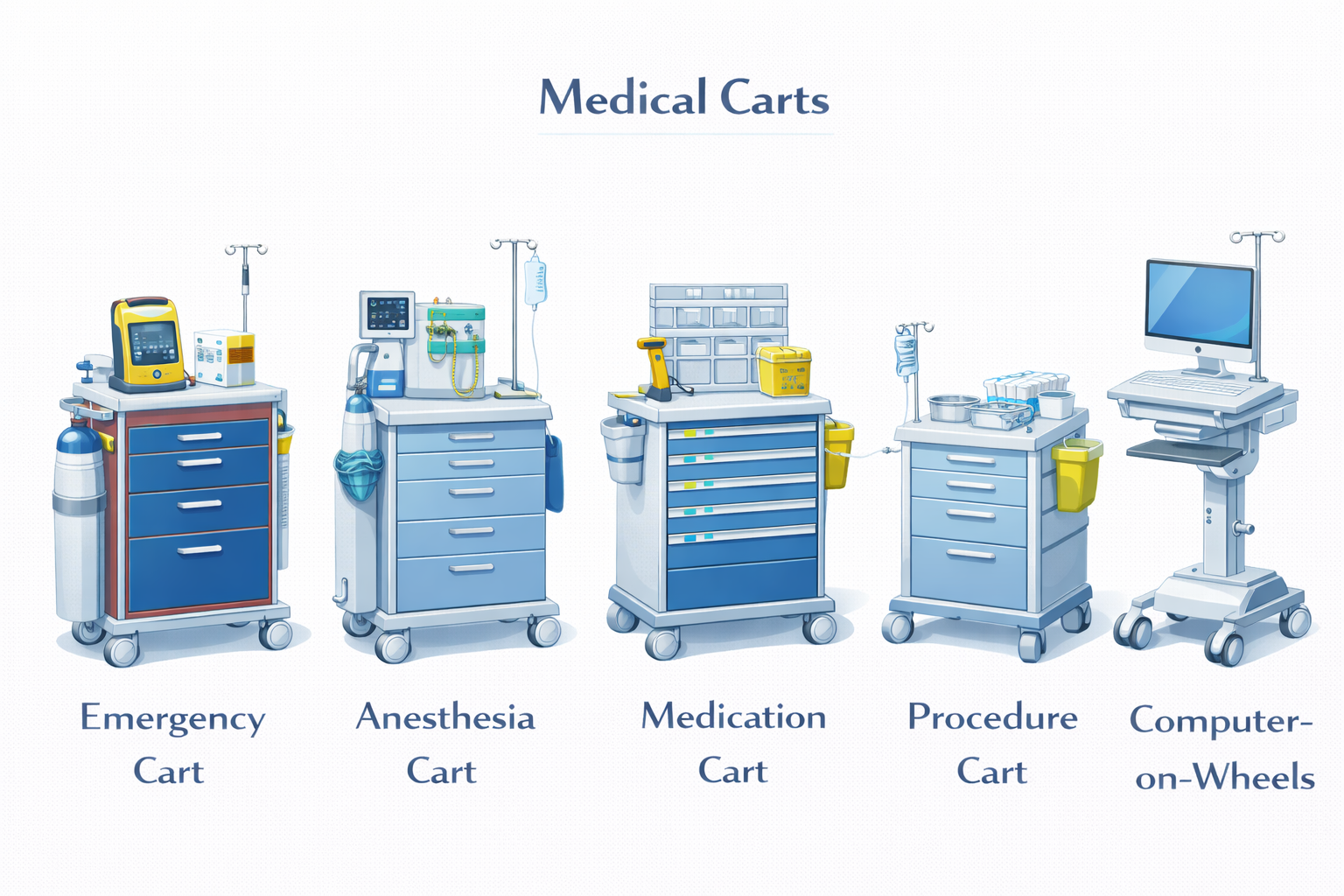 What factors are driving Medical Carts Market revenue growth? Healthcare EHR adoption driving mobile computing cart demand, GlobalMed's October 2025 premium cart product launches, AVer's telehealth cart innovation, Asia-Pacific hospital digitalization investment, and growing ambulatory surgical center cart procurement collectively drive revenue growth through 2033.