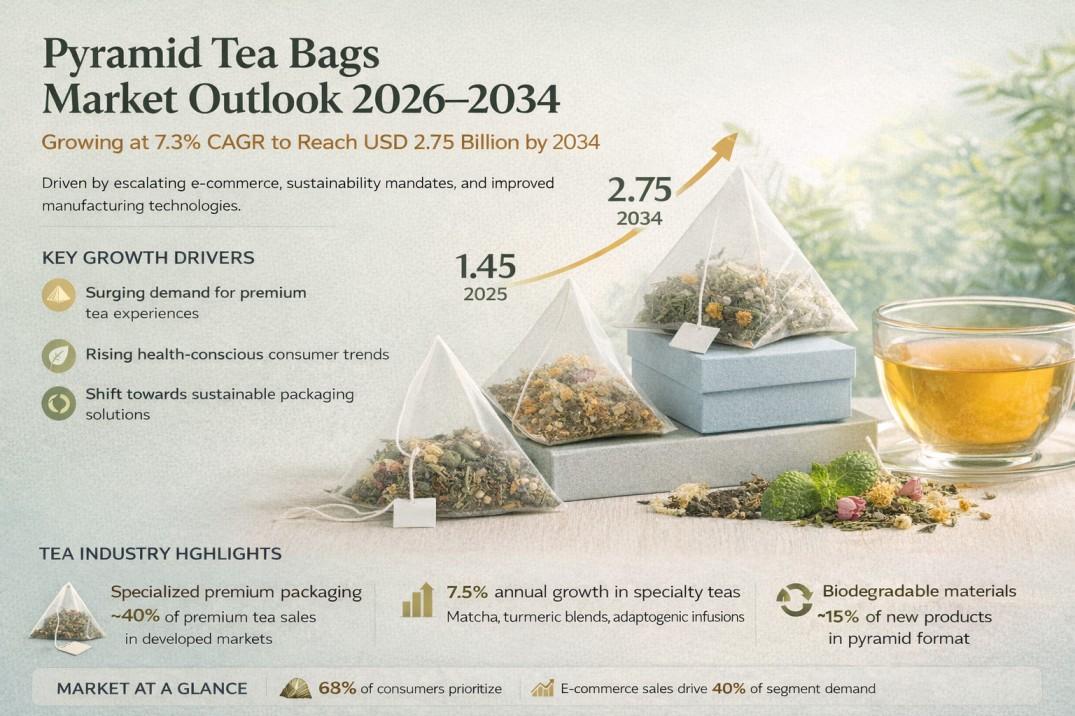 According to new research findings from Intel Market Research, the global Pyramid Tea Bags market reached a valuation of USD 1.45 billion in 2025 and is forecast to achieve USD 2.75 billion by 2034, expanding at a steady CAGR of 7.3% between 2026-2034. This growth trajectory stems from accelerating consumer preference for premium tea experiences, increasing health consciousness, and the transition toward sustainable packaging formats in the beverage sector.