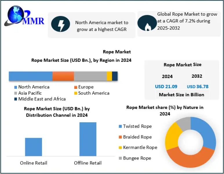 The global rope market is transitioning from traditional fiber-based products to advanced, high-performance, and sustainable solutions. Driven by industrial growth, renewable energy expansion, and increasing safety requirements, the market is expected to maintain strong growth momentum through 2032.