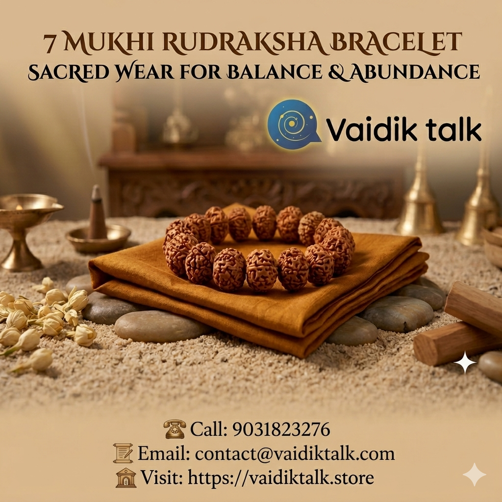 The 7 Mukhi Rudraksha Bracelet is not just a piece of jewelry but a symbol of prosperity and balance. Choose Vaidik Talk to bring home an authentic bracelet and invite wealth, stability, and success into your life.