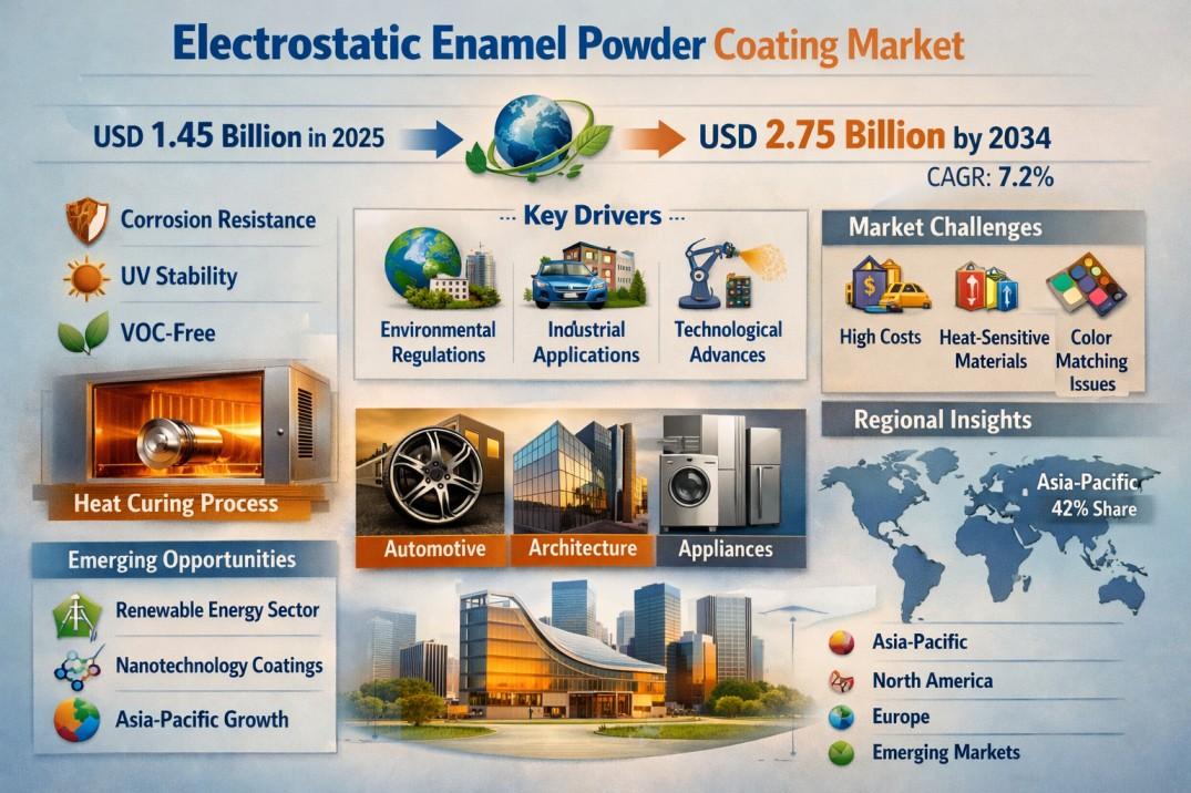 The coating is then heat-cured, forming a smooth, hard finish that outperforms conventional painting methods in durability and longevity. 📥 Download FREE Sample Report: Electrostatic Enamel Powder Coating Market - View in Detailed Research Report