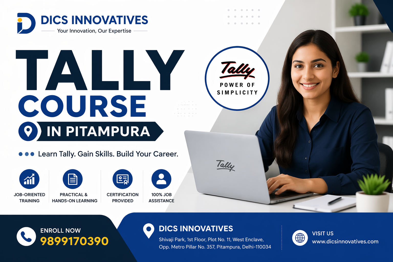 In today’s competitive business world, accounting and financial management skills are essential for career growth. One of the most in-demand skills in this domain is proficiency in Tally, a powerful accounting software widely used across industries. If you are looking to build a successful career in accounting, finance, or taxation, enrolling in a Tally Course in Pitampura – DICS Innovatives can be your smartest decision.