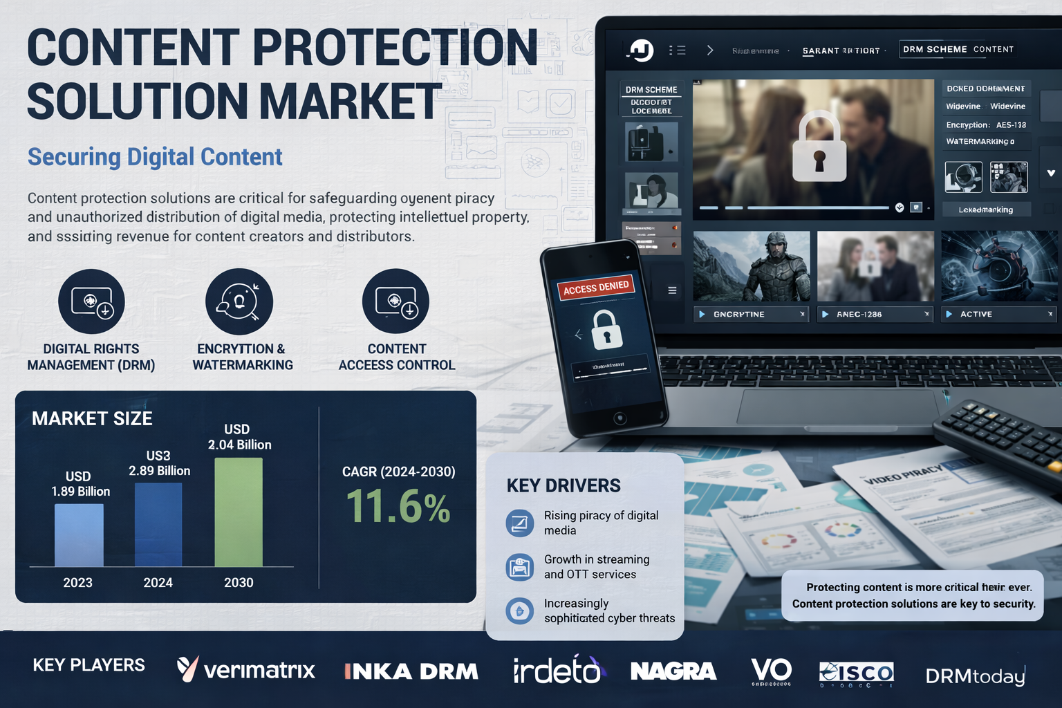 The Content Protection Solution Market operates within a rapidly evolving digital ecosystem characterized by increasing data generation, widespread internet penetration, and growing concerns over cybersecurity. Content protection solutions are essential for ensuring secure distribution and usage of digital content, enabling organizations to maintain control over their intellectual property and prevent unauthorized usage.
