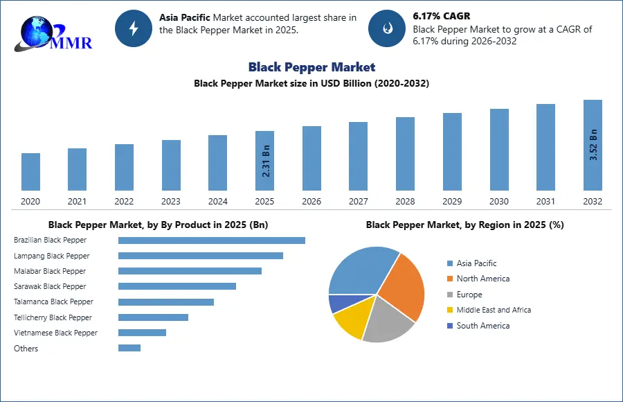 The global Black Pepper Market is witnessing robust growth, fueled by rising demand across food, pharmaceutical, and personal care industries. Valued at USD 2.31 billion in 2025, the market is projected to grow at a CAGR of 6.17% from 2026 to 2032, reaching nearly USD 3.52 billion by 2032. Increasing consumer awareness regarding health benefits, expanding applications, and evolving agricultural practices are key contributors to the market’s expansion.