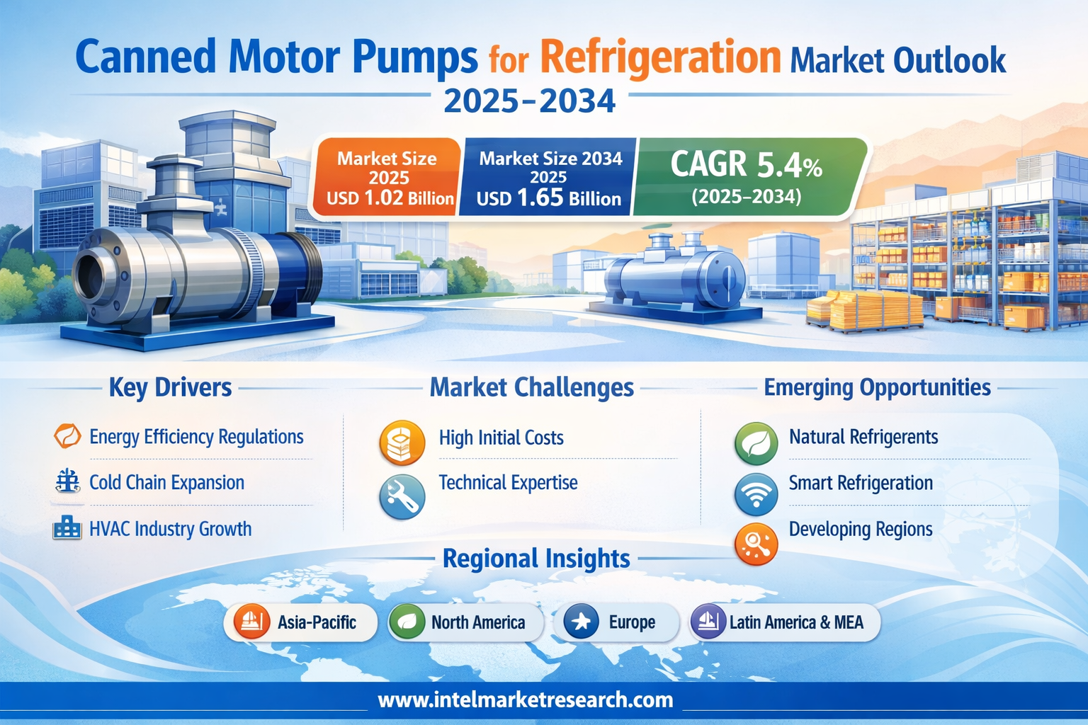 According to a new report from Intel Market Research, the global Canned Motor Pumps for Refrigeration market was valued at USD 1.02 billion in 2025 and is projected to reach USD 1.65 billion by 2034, growing at a robust CAGR of 5.4% during the forecast period (2025–2034). This growth is propelled by stringent global regulations on refrigerant emissions, a strong push for energy efficiency in industrial and commercial cooling applications, and the expansion of cold chain logistics and the HVAC sector in developing economies.