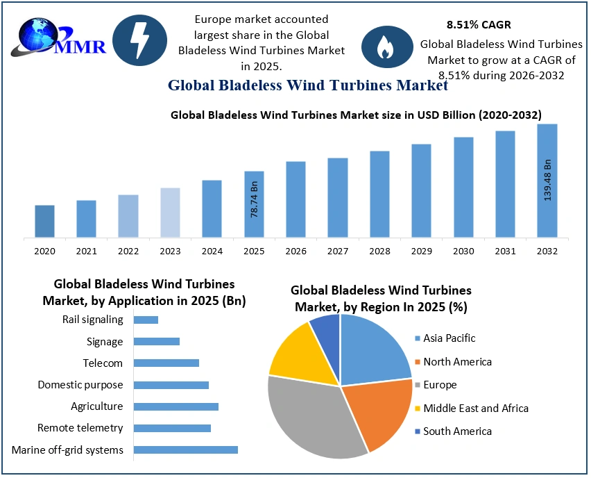 The Bladeless Wind Turbines Market size was valued at USD 78.74 Billion in 2025 and the total Bladeless Wind Turbines revenue is expected to grow at a CAGR of 8.51% from 2026 to 2032, reaching nearly USD 139.48 Billion by 2032.