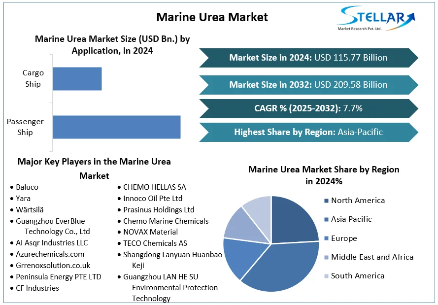 The global Marine Urea Market size was valued at USD 115.77 billion in 2024. The market is expected to grow at a CAGR of 7.7 % during the forecast period from 2025-2032, reaching nearly USD 209.58 billion by 2032.