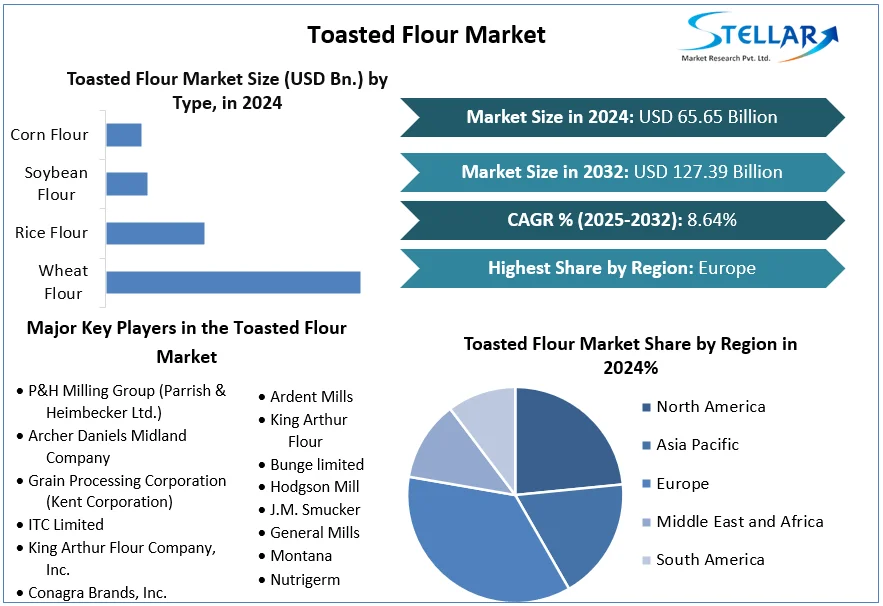 Toasted Flour market Size was valued at USD 65.65 Billion in 2024. The market is expected to grow at a CAGR of 8.64% during the forecast period of 2025-2032 reaching nearly USD 127.39 Billion by 2032.