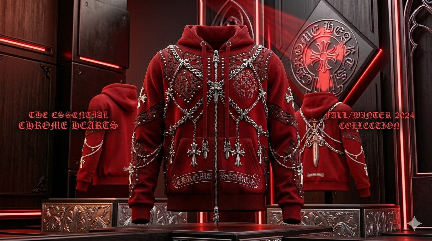 While the gothic cross is the "front door" to the Chrome Hearts universe, the brand’s depth lies in a vast library of symbols that pull from medieval heraldry, punk rock, and religious iconography. Each motif acts as a secret handshake—if you can spot the difference between a CH Plus and a Floral Cross, you’re officially part of the inner circle.