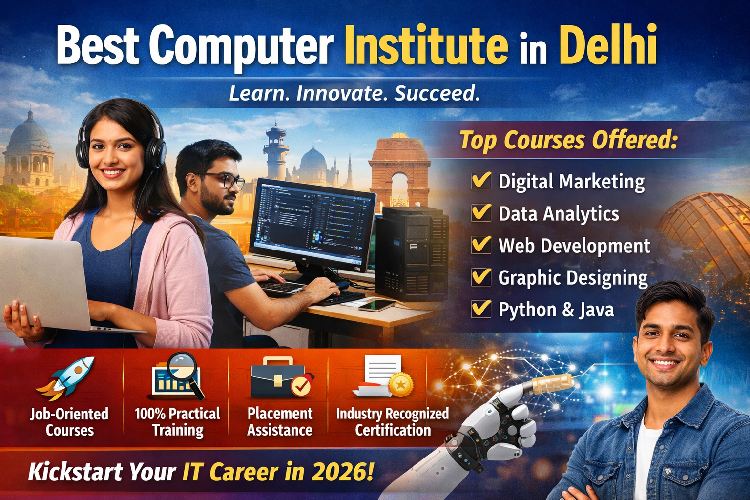 Looking for the best computer institute in Delhi? Explore top-rated IT courses including digital marketing, data analytics, and programming with 100% practical training and placement support. Enroll today!