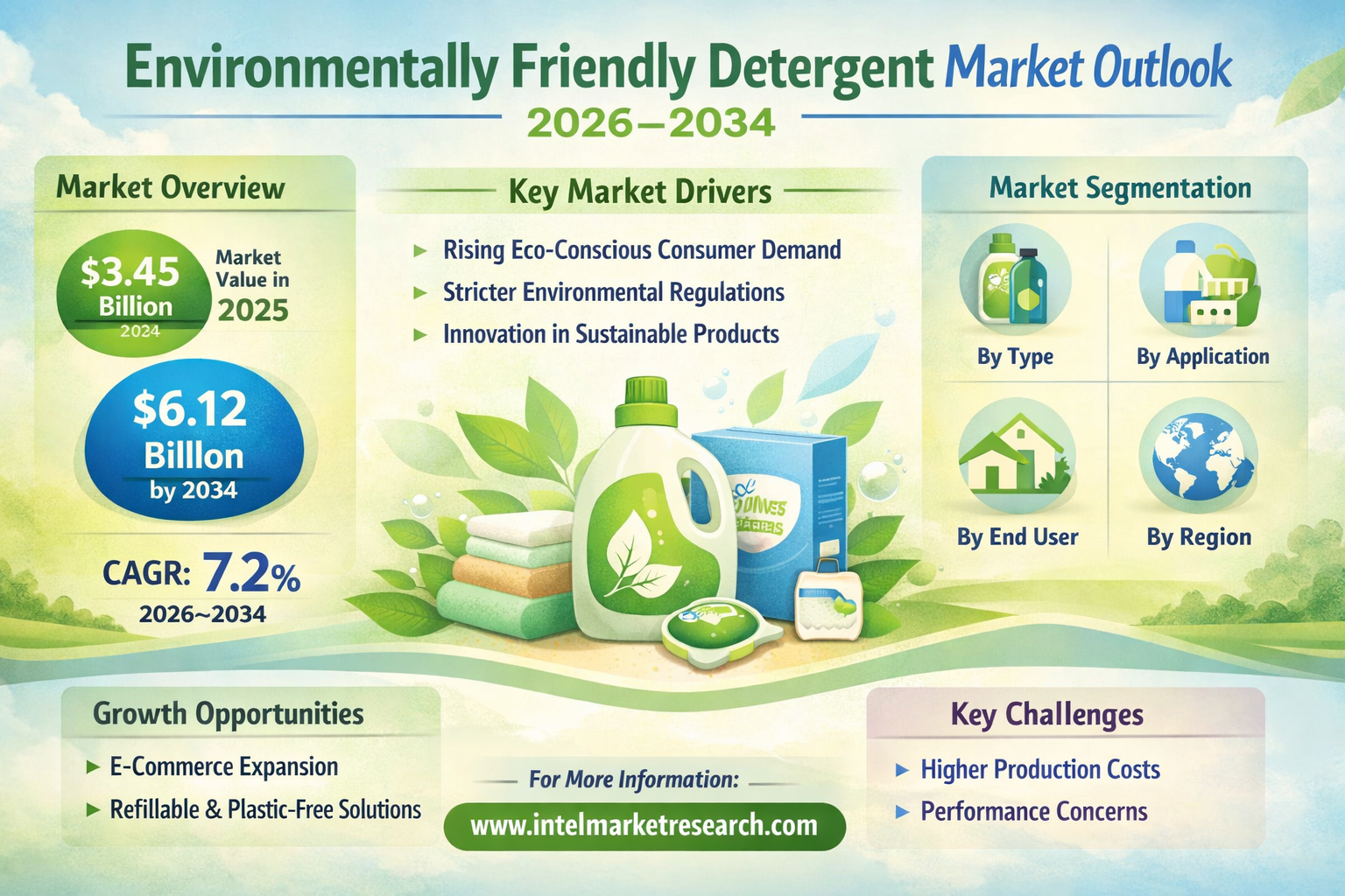 According to a new report from Intel Market Research, the global Environmentally Friendly Detergent market was valued at USD 3.45 billion in 2025 and is projected to reach USD 6.12 billion by 2034, growing at a robust CAGR of 7.2% during the forecast period (2026–2034). This growth is propelled by increasing consumer awareness of sustainability, stringent environmental regulations, and rising demand for eco-conscious household products.