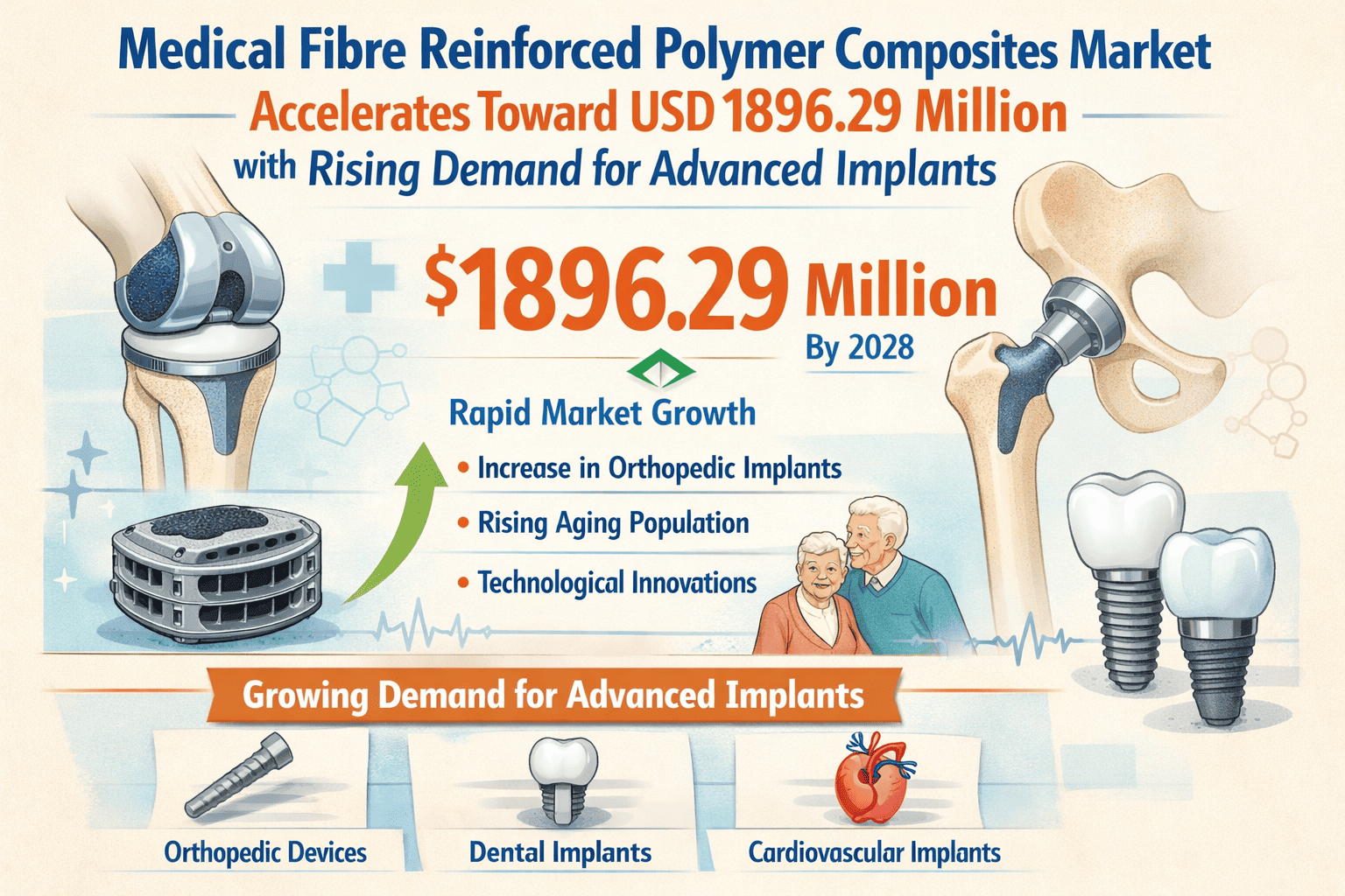 The medical FRP composites market is propelled by an aging global population requiring orthopedic interventions, increasing preference for non-metallic implants in MRI environments, and technological advancements in composite manufacturing techniques. Orthopedic applications account for approximately 62% of medical composite usage, followed by dental at 23%, with emerging applications in surgical instruments and prosthetics gaining traction.