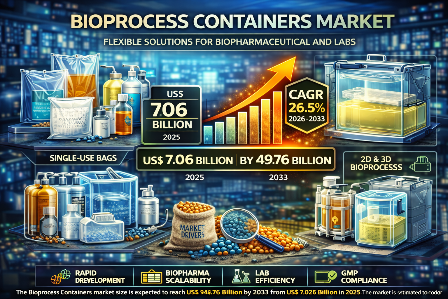 The financial trajectory of this sector reflects its growing importance in the healthcare supply chain. According to recent market analysis, the Bioprocess Containers market size is expected to reach US$ 49.76 billion by 2033 from US$ 7.06 billion in 2025. The market is estimated to record a CAGR of 26.5% from 2026 to 2033. This robust growth rate underscores the massive scale-up in bioproduction capacity required to meet global healthcare needs over the next decade.