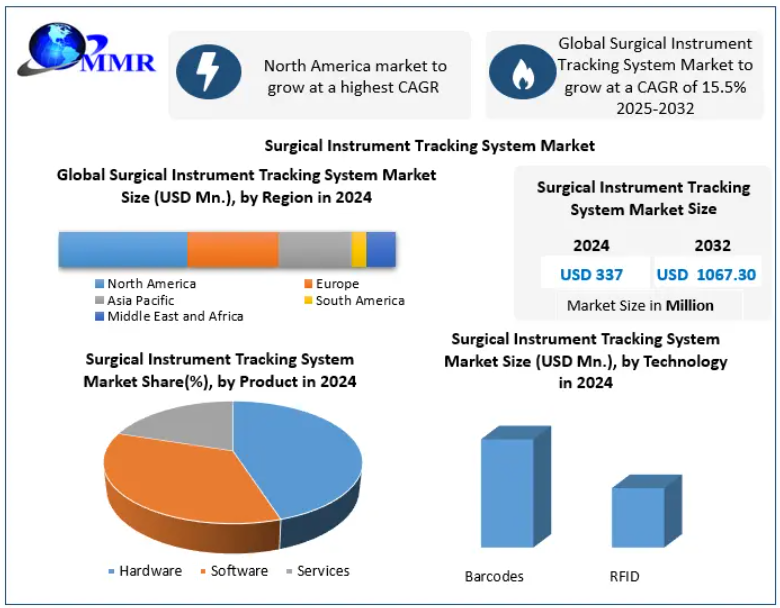 The global Surgical Instrument Tracking System Market is witnessing rapid growth as healthcare systems embrace digital transformation. Valued at USD 337 million in 2024, the market is projected to grow at a CAGR of 15.5%, reaching nearly USD 1,067.30 million by 2032.