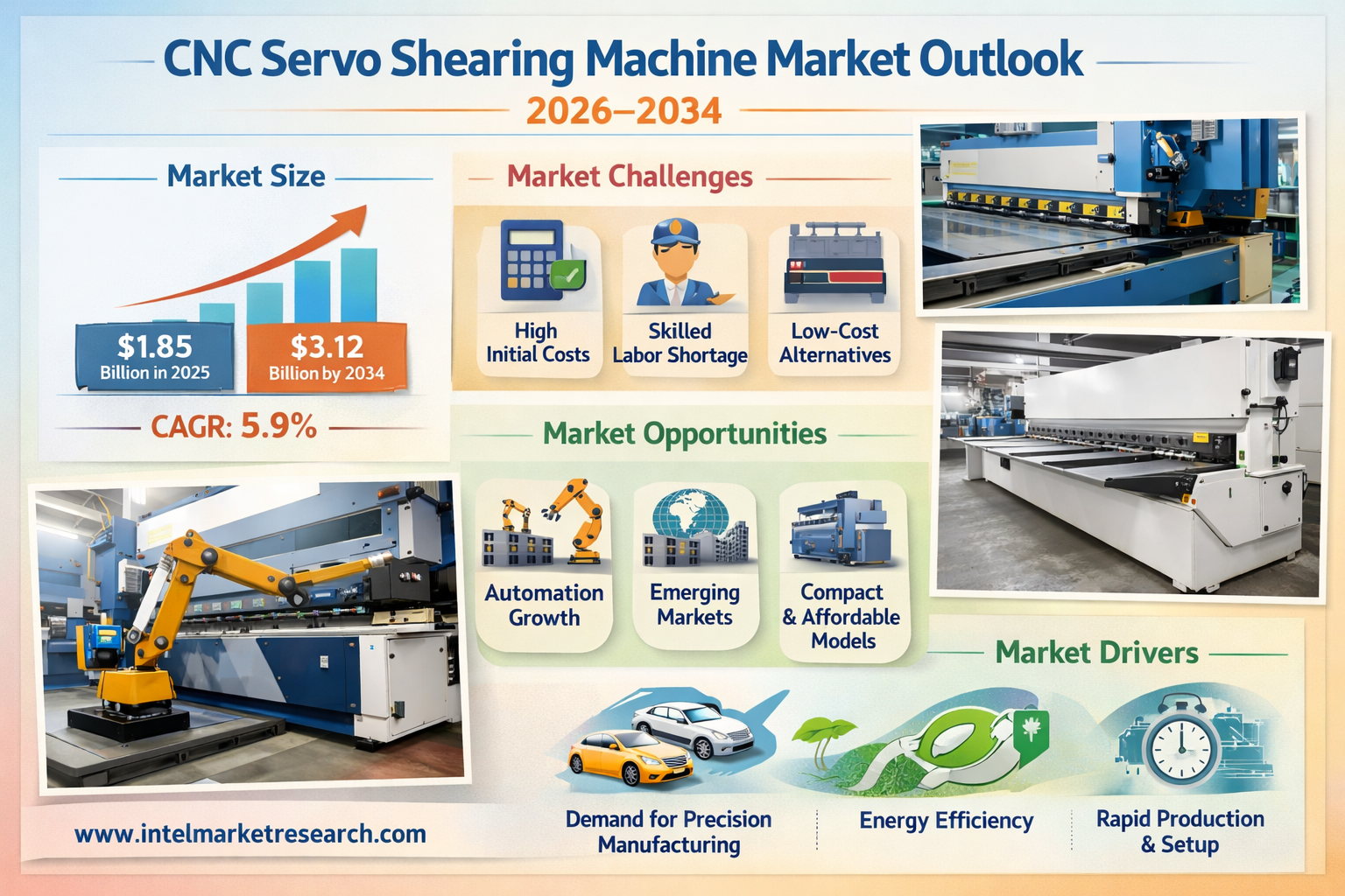 According to a new report from Intel Market Research, the global CNC Servo Shearing Machine market was valued at USD 1.85 billion in 2025 and is projected to reach USD 3.12 billion by 2034, growing at a CAGR of 5.9% during the forecast period (2026–2034). This growth is propelled by the global push for industrial automation, the demand for higher manufacturing precision across key sectors such as automotive, aerospace, and shipbuilding, and the transition towards energy-efficient machinery to reduce operational costs.