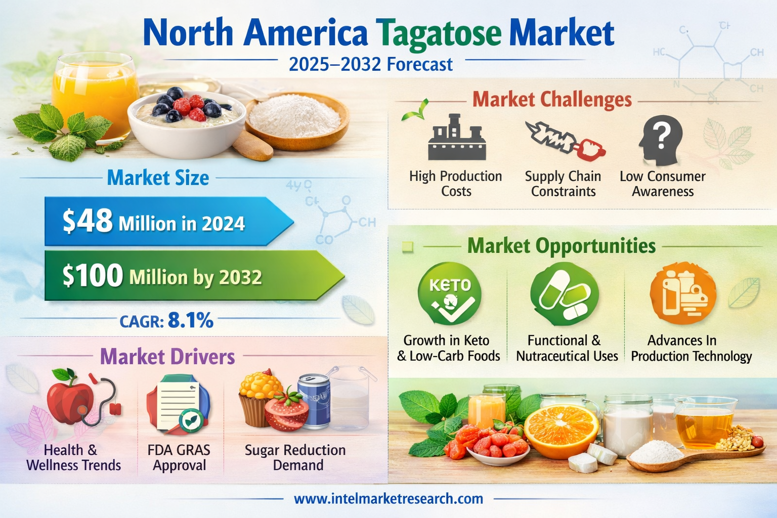 According to a new report from Intel Market Research, the North America Tagatose market was valued at USD 48 million in 2024 and is projected to reach USD 100 million by 2032, growing at a robust CAGR of 8.1% during the forecast period (2025–2032). This growth is propelled by surging demand for healthier alternatives amid rising obesity and diabetes prevalence, with over 40 million diabetics in the US alone fueling adoption, regulatory support via FDA GRAS status, and advancements in production processes enhancing scalability.