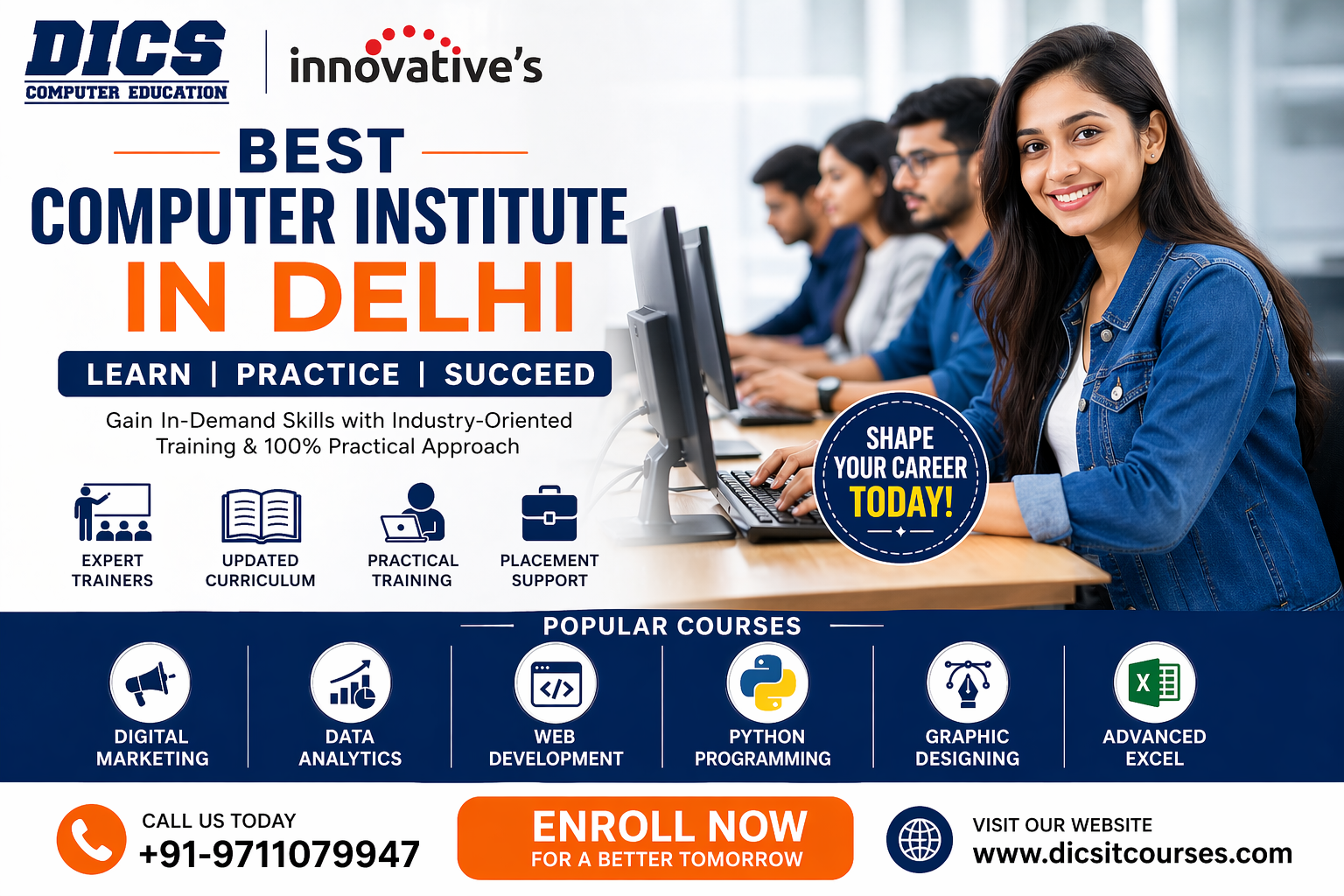 Looking for the best computer institute in Delhi? Get industry-oriented training in digital marketing, data analytics, programming, and more with expert trainers and placement support. Enroll today!