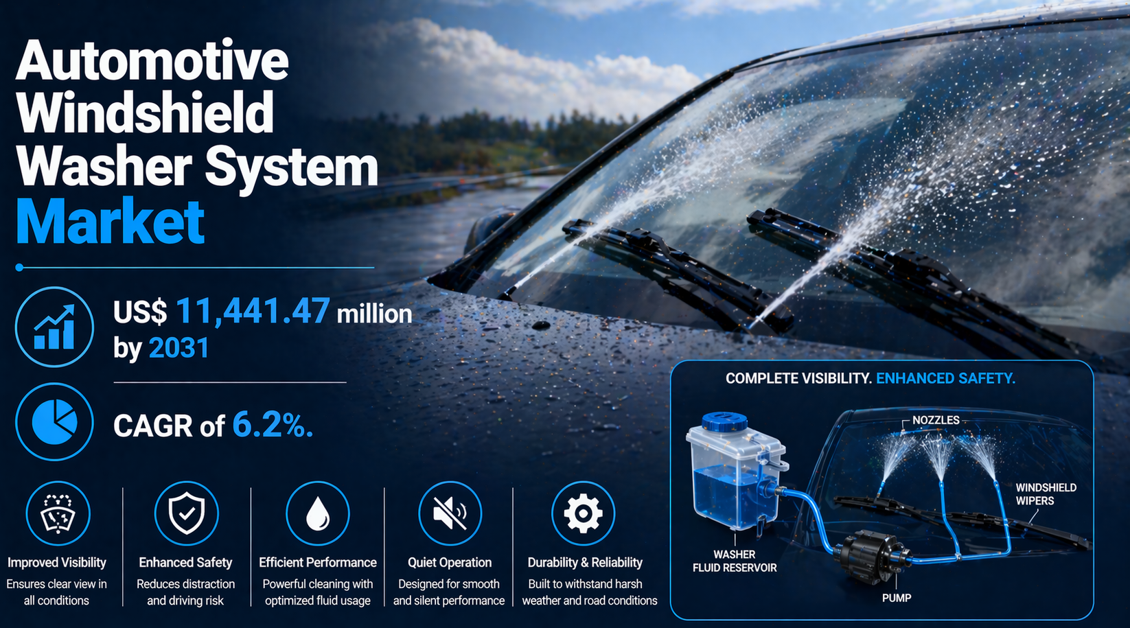 The demand for high performance washer systems is driven by a combination of rising vehicle production and the increasing complexity of automotive safety suites. The Automotive Windshield Washer System Market is projected to reach US$ 11,441.47 million by 2031 from US$ 7,063.05 million in 2023. The market is expected to register a CAGR of 6.2% during 2023–2031. This steady growth trajectory highlights the essential nature of these systems in modern vehicle design and the long term potential for component suppliers.