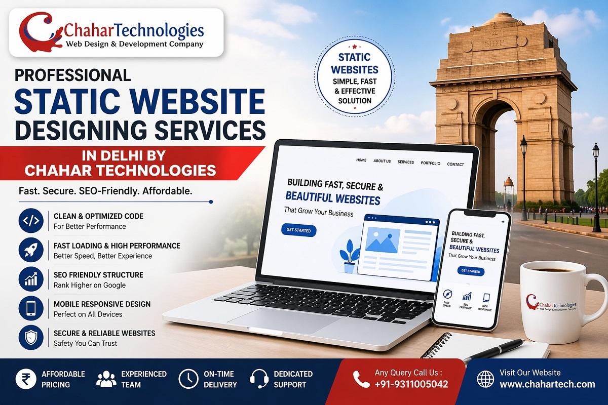 As a trusted Static Website Design company in Delhi, Chahar Technologies delivers reliable, high-performance, and visually appealing websites. Their expertise, affordability, and client-focused approach make them an excellent choice for businesses looking to succeed online.