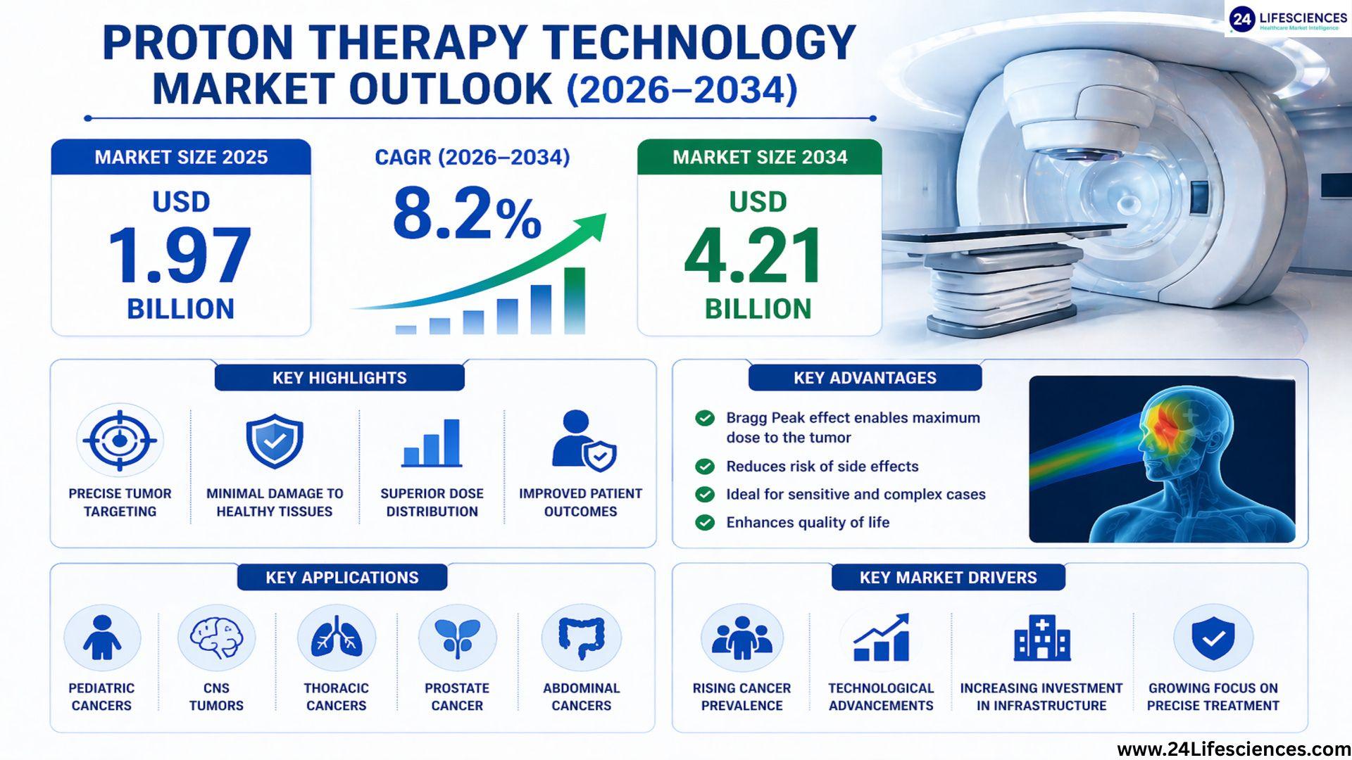 According to a newly published market research report by 24LifeSciences, global proton therapy technology market was valued at USD 1.97 billion in 2025 and is projected to reach USD 4.21 billion by 2034, growing at a compound annual growth rate (CAGR) of 8.2% during the forecast period 20262034.