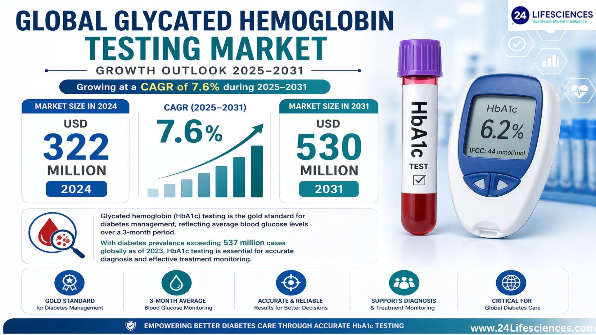 According to a newly published market research report by 24LifeSciencesglobal glycated hemoglobin testing market was valued at USD 322 million in 2024 and is projected to reach USD 530 million by 2031, growing at a compound annual growth rate (CAGR) of 7.6% during the forecast period 2025-2031.