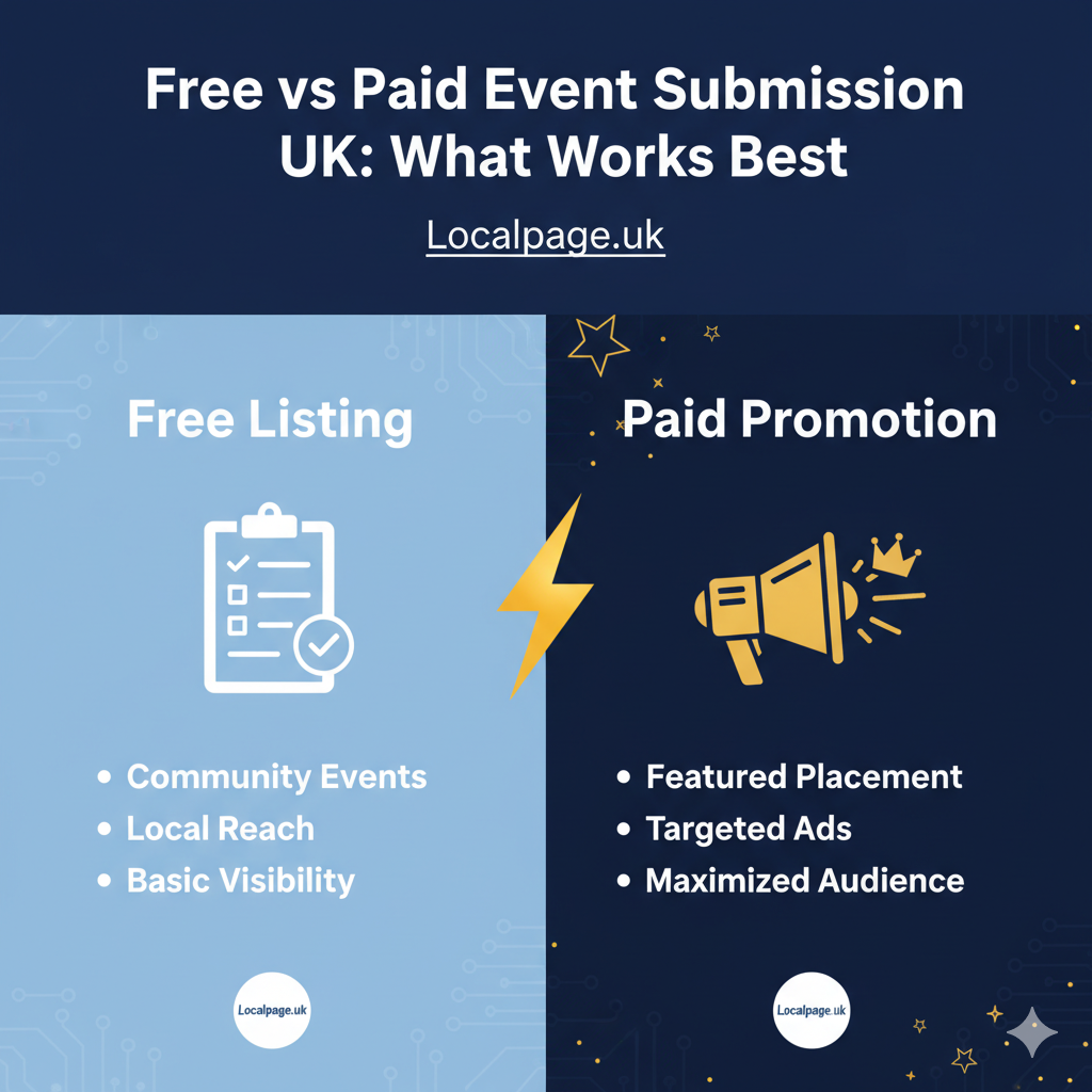Localpage.uk offers a hybrid model. Beginners can start with free event listing sites UK features to test the waters, while established brands can scale up to event advertising platforms UK features for maximum impact.