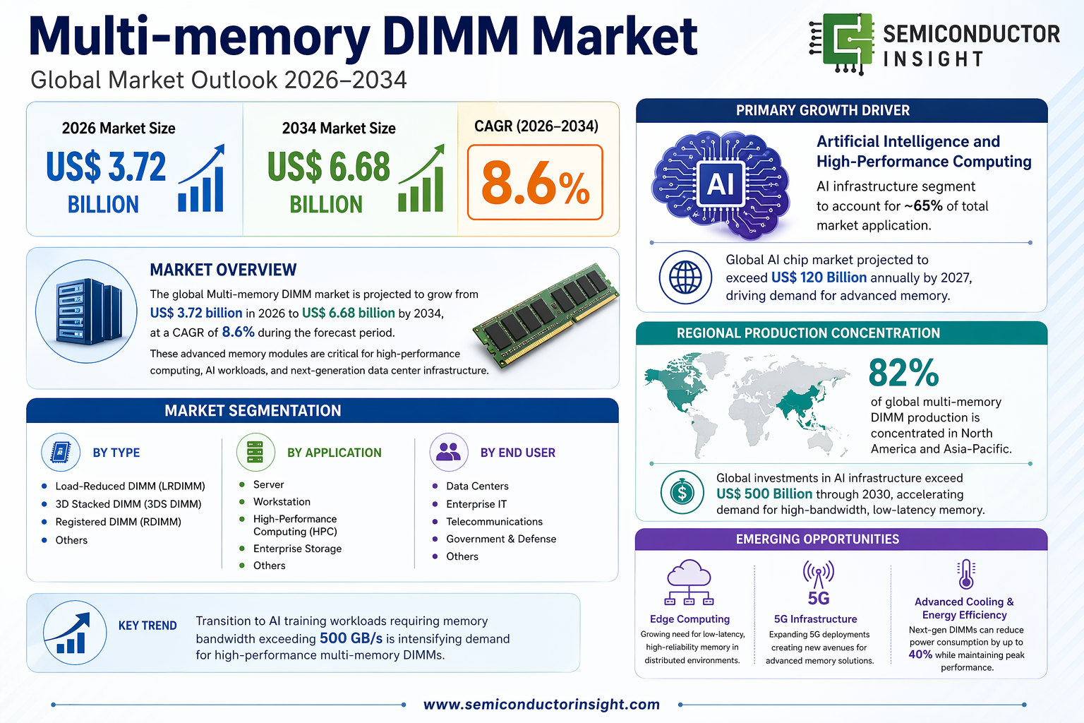 Global Multi-memory DIMM Market, valued at a robust US$ 3,278 million in 2024, is on a trajectory of significant expansion, projected to reach US$ 5,334 million by 2032. This growth, representing a compound annual growth rate (CAGR) of 8.3%, is detailed in a comprehensive new report published by aInsight. The study highlights the critical role of these advanced memory modules in enabling high-performance computing, artificial intelligence workloads, and next-generation data center infrastructure.
