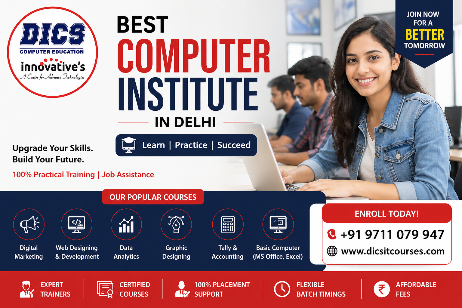 Looking for the best computer institute in Delhi? Explore top IT courses, expert trainers, and 100% job-oriented training programs. Upgrade your career with industry-ready skills today!