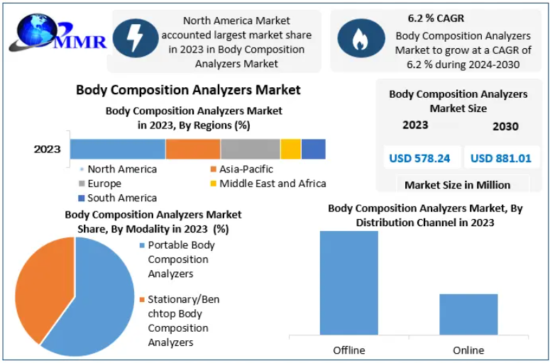 The global Body Composition Analyzers Market is witnessing steady growth, fueled by rising health awareness, increasing obesity rates, and the growing adoption of preventive healthcare tools. The market was valued at USD 578.24 million in 2023 and is projected to reach USD 881.01 million by 2030, expanding at a CAGR of 6.2% during the forecast period.