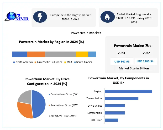 Key growth drivers include the rising adoption of electric vehicles (EVs), stringent emission regulations, and the growing focus on fuel efficiency. Governments across the globe are implementing policies to reduce carbon emissions, encouraging automakers to develop advanced powertrain technologies. Additionally, the shift toward hybrid and electric propulsion systems is significantly influencing market dynamics. Opportunities are emerging through innovations in battery technologies, lightweight materials, and integrated powertrain systems. The increasing investment in research and development for electrified powertrains and the expansion of EV infrastructure are further supporting market growth.