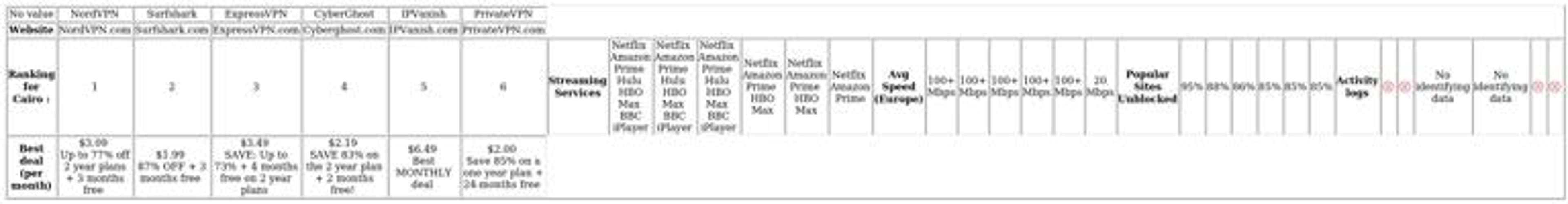 Top-performing VPN services for Cairo include: