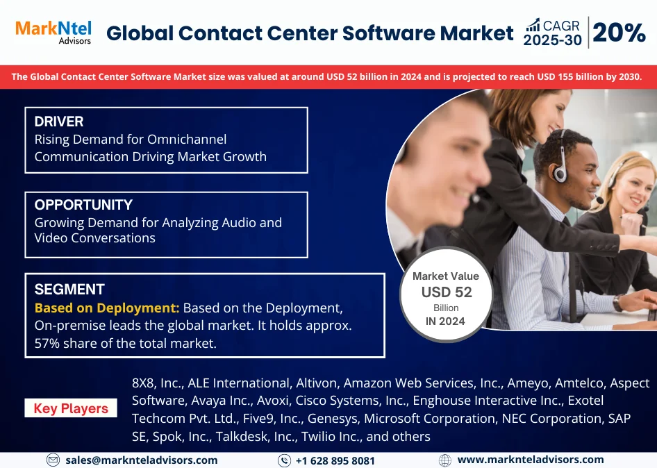 MarkNtel Advisors Releases Comprehensive Study on the Contact Center Software Market, Forecasting Strong Growth from 2025 to 2030