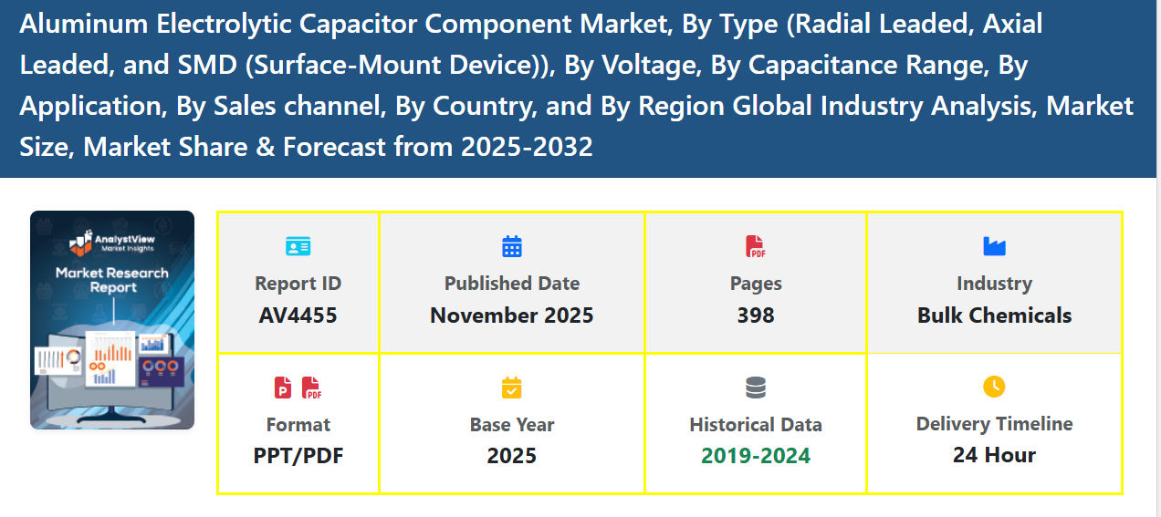 The aluminum electrolytic capacitor component market is experiencing steady growth driven by rising demand for energy-efficient electronic systems and rapid expansion of power-intensive applications. As one of the most widely used capacitor types, aluminum electrolytic capacitors offer high capacitance, cost-effective performance, and excellent energy-storage capability, making them essential in power supplies, consumer electronics, automotive electronics, industrial machinery, and renewable energy systems.