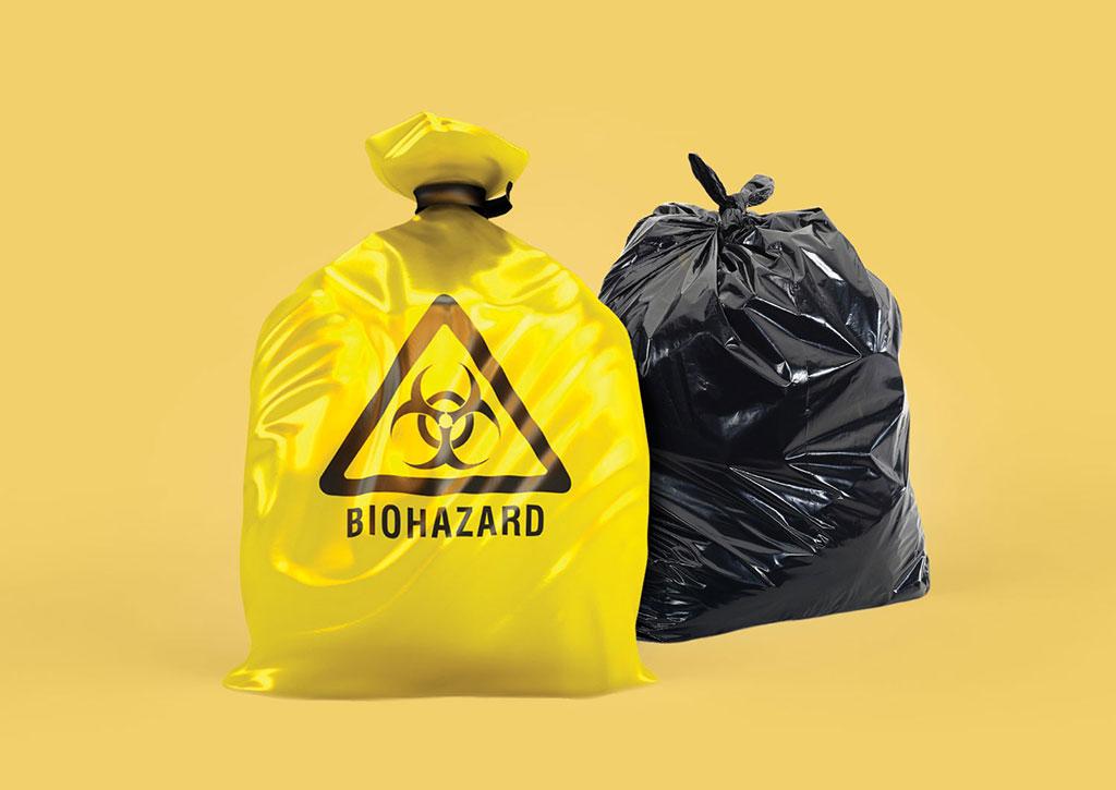 Specialized garbage bags are used in hospitals and clinics to manage biomedical waste safely and hygienically.