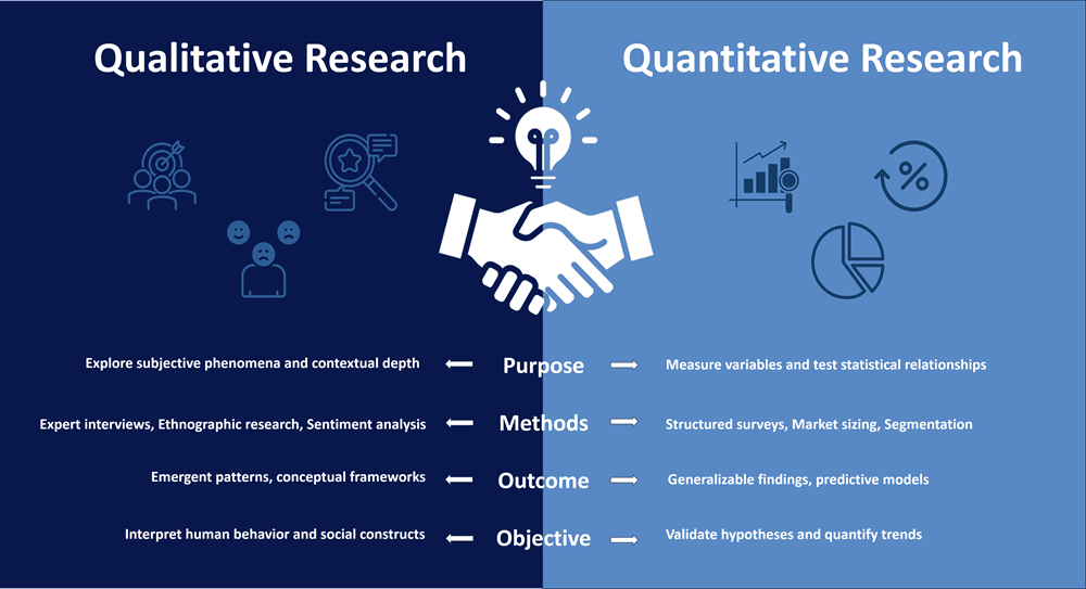 Qualitative and quantitative research complement each other by addressing these deficiencies: